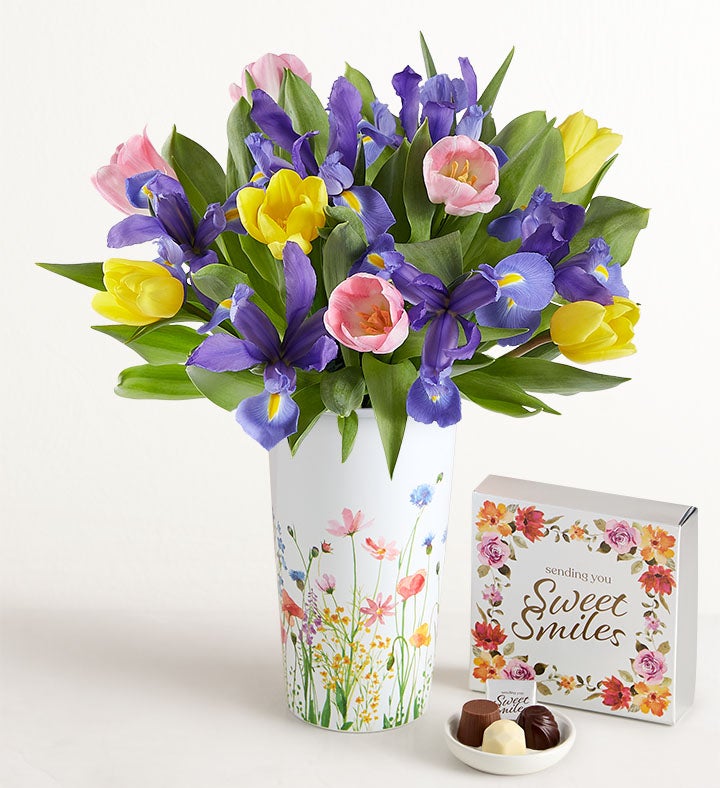 Romantic bouquets like the "Fields of Europe Romance" or "Fields of Europe Celebration" from 1800Flowers.